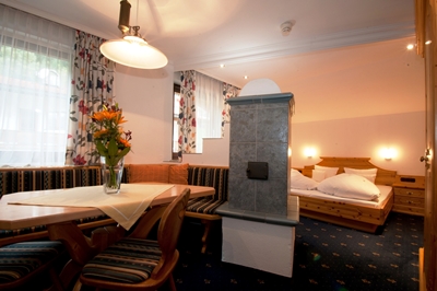 L'abbinamento perfetto per le famiglie: su circa 45 m² si trovano due zone notte separate, ciascuna con un letto matrimoniale e due letti singoli o un letto a castello doppio, nonché una zona giorno con salotto e un bagno con doccia/WC. Le accoglienti camere familiari sono arredate in stile tirolese. Un balcone completa il carattere accogliente delle spaziose camere familiari.